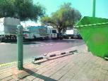 وفي الصورة تبدو لافتة موجودة في مركز مدينة العين، وقد سويت بالأرض لسبب غير معروف، في انتظار من يعيدها إلى وظيفتها.