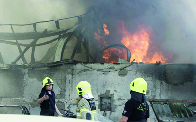 رجال الدفاع المدني أثناء عملية الإطفاء. الإمارات اليوم