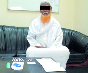 وأضاف «أنه بناءً على المعلومات السرية، تم تشكيل فريق بحث ووضع خطة للقبض على المتهم متلبساً، واتخاذ الإجراءات القانونية، وتكليف أحد رجال الشرطة بالمهمة، إذ زار المتهم في بيته، مدّعياً أنه يعاني مشكلة أسرية، فطلب منه إحضار زيت زيتون وحبة البركة ومياه بحر في زجاجة».
