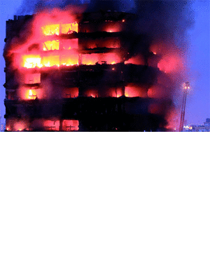 وتابع «عند وصول سيارات الإطفاء موقع الحريق تبين أن العقار مكون من 13 طابقاً والحريق بدأ من الطابقين الثاني والثالث، وبسبب وجود مواد قابلة للاشتعال مثل (الفيبر غلاس) في واجهة البناية انتشرت النيران سريعاً إلى بقية الطوابق».
