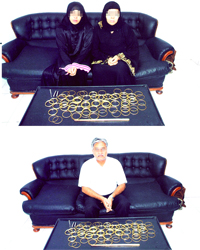 الفتاتان وشريكهما مع مضبوطات الذهب المغشوش. من المصدر