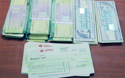 فريق الشرطة ضبط نحو 1000 شيك سياحي مزوّر. من المصدر