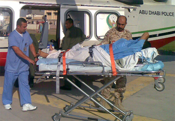 ومن مستشفى صقر في رأس الخيمة، نقلـت الطائرة مريضاً مواطناً (25 عاماً) إلى مستشفى خليفة في أبوظبـي نظراً لسـوء حالته الصحية وصعوبة عملية التنفس لديه. وتحركت طائرة الإسعاف الجوي لنقل مريض إماراتي من جزيرة مبرز إلى مستشفى زايد العسكري في أبوظبي يعاني من حصى في الكلى.