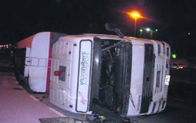 إلى ذلك أصيب سائق يدعى (أ.خ) في حادث انقلاب صهريج ديزل يزن نحو 4500 غالون نتيجة قيادته بسرعة زائدة على شارع المنامة في منطقة العوير، ما أدى إلى الانحراف المفاجئ للمركبة بالقرب من الدوار وتدهور الصهريج. وقال مدير إدارة الإنقاذ الرائد جمعة أحمد بطي الفلاسي إن دوريات الإنقاذ البري والمهمات الصعبة قامت فور تلقي بلاغ عن الحادث، وبالتعاون والتنسيق مع فرقة من إدارة الدفاع المدني في دبي، وفريق الطوارئ في البلدية، وعضو لجنة السير بالإدارة العامة للمرور، بتفريغ حمولة الصهريج بعد تعديل وضعيته بواسطة الرافعات، وذلك منعاً لوقوع حادث حريق، إذ إن الحادث وقع بالقرب من خط الضغط العالي للكهرباء، لافتاً إلى أن سائق الصهريج أصيب بإصابات متوسطة، وتم نقله إلى المستشفى لتلقّي العلاج.