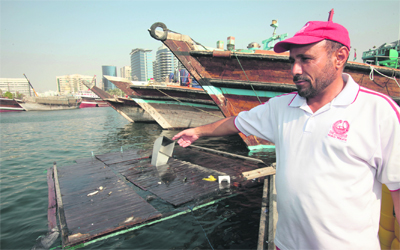بقايا الزورق الغارق في خور دبي. تصوير: باتريك كاستيلو