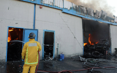 حريق بمستودع قطع غيار في صناعية الشارقة