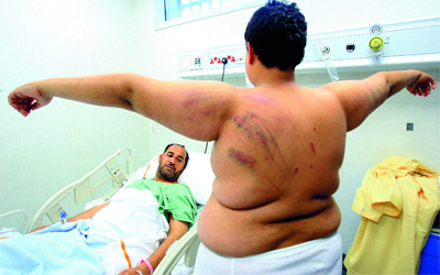 وأضاف لـ«الإمارات اليوم» أن والده دخل إلى المتجر بعدما شاهد ابنه يتعرض للضرب، إلا أنه تعرّض للاعتداء العنيف بدوره، مشيراً إلى أنهم كادوا أن يفقأوا إحدى عينيه، فيما تورّم وجهه نتيجة الضرب، كما طعنوه بمفكّ كبير الحجم في ظهره، وأجزاء أخرى من جسده، وحرصوا على تصوير واقعة اعتدائهم عليه وعلى والده.