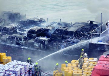 إلى ذلك، أفاد مدير مركز شرطة الموانئ العقيد محمد جاسم الزعابي، بأن ثلاثة قوارب اشتركت في الحادث، الأول قارب إيراني كان في جهة البحر يليه قارب هندي كبير محمل بنحو 15 سيارة وبضائع أخرى، بعضها قابل للاشتعال، يليه قارب ثالث يرسو على الميناء مباشرة.
