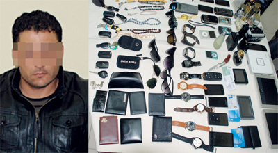 وأوضح أن «المقتنيات الشخصية المسروقة من السيارات انحصرت في ساعات رجالية ونسائية ثمينة، ومصوغات ذهبية، وحافظات نقدية، ونظارات شمسية، وكاميرات تصوير، وأجهزة إلكترونية وحاسوبية، وهواتف متحركة، وحقائب نسائية».