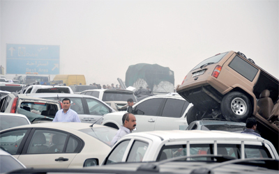 وفاة شخص وإصابة 61 بتصادم وسط الضباب