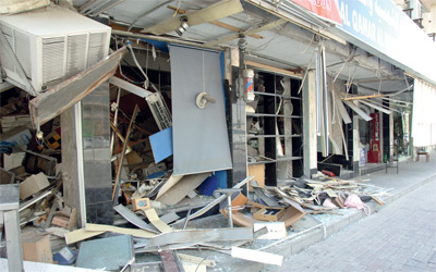 الانفجار ألحق أضراراً في 10 محال مجاورة للمطعم. تصوير: تشاندرا بالان