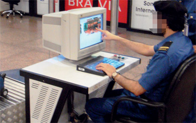 فحص الحقيبة بالأجهزة كشف المخدرات بداخلها. من المصدر