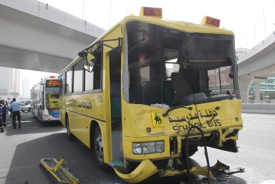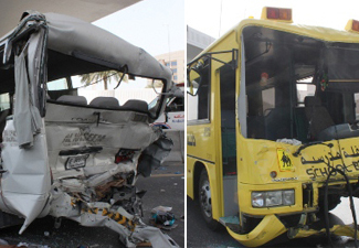 أسفر حادث تصادم وقع، صباح اليوم، بين حافلتين تقل إحداها طلبة من إحدى المدارس، والأخرى عمالاً، على شارع الشيخ زايد باتجاه أبوظبي عند الجسر الخامس، عن إصابة 19 شخصاً بإصابات متفاوتة.