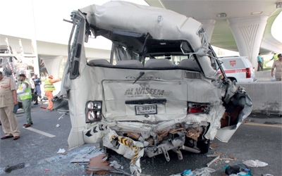 وتفصيلاً، قال مدير الإدارة العامة للمرور اللواء مهندس محمد سيف الزفين لـ«الإمارات اليوم»، إن الحادث وقع في الساعة 25:7 صباح أمس على شارع الشيخ زايد، مقابل الجامعة الأميركية حين انفجر الإطار الأمامي الأيمن لحافلة متوسطة كانت تقل 25 موظفا تابعين لشركة تعمل في منطقة جبل علي الحرة، ما أدى إلى توقفها بشكل مفاجئ في منتصف الشارع.