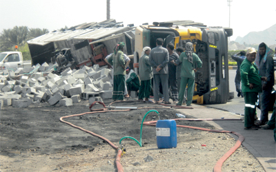 الشاحنة انقلبت نتيجة عدم الانتباه أو الحمولة الزائدة. الإمارات اليوم