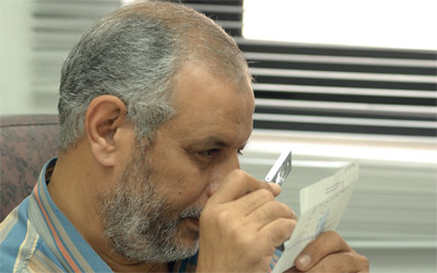 الخبير عقيل النجار أثناء فحص شيك للتأكد من صحته. من المصدر