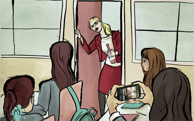أمسكت زجاجة خمر في يدها وقبّلت طالبات وتصرفت بسلوك غير لائق