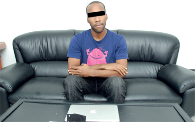 المتهم وأمامه جهاز كمبيوتر سرقه من فيلا في الرفاعة. من المصدر