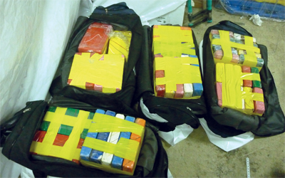 وبعد اتخاذ إجـراءات السلامة والأمان اللازمـة، تم فتح الحقائب، فوجدوا داخل كل منها قوالب مستطيلة الشكل، فيها مادة بيضاء اللون، لها المظهر المميز لمخدر الكوكايين، فتم نقل الحقائب إلى الإدارة العامة لمكافحة المخدرات، ثم أُحيلت المادة المضبوطة إلى الإدارة العامة للأدلة الجنائية وعلم الجريمة، للوقوف على ماهيتها ووزنها. وأشار العسماوي إلى أن «تقرير المختبر الجنائي أثبت أن المادة المضبوطة هي مخدر الكوكايين، ويبلغ وزنها 92 كيلو و48 غراماً، ويصل سعرها السوقي إلى نحو 140 مليون درهم».