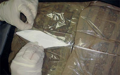 وأضاف أنه عند سؤال المسافرة عن المادة أنكرت معرفتها بوجودها، وادعت أن الحقيبة تخص صديقاً لها مقيماً في دولة أوروبية، ثم قام مفتشو جمارك دبي بتحويل المسافرة إلى مكتب الإدارة العامة لمكافحة المخدرات التابعة للقيادة العامة لشرطة دبي لاستكمال الإجراءات المتبعة.