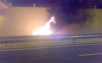 مركبة السائق خلال احتراقها في نفق الاتحاد. الإمارات اليوم