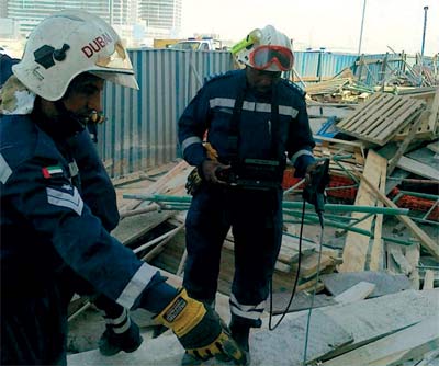 إلى ذلك، قال نائب مدير إدارة الإنقاذ والمهمات الصعبة في الإدارة العامة للعمليات في شرطة دبي، الرائد أحمد بورقيبة لـ«الإمارات اليوم» إن فريق الإنقاذ والمهمات الصعبة انتقل خلال دقائق من تلقي البلاغ إلى موقع الحادث واستطاع انتشال اثنين من المصابين في حالة حرجة من بين الأنقاض، ونقلا إلى المستشفى بوساطة النجدة الجوية، نظراً لخطورة حالتيهما.