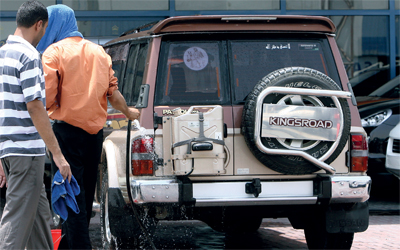 غسل السيارات في الشوارع من الممارسات المخالفة للقانون. الإمارات اليوم
