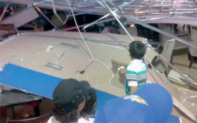 قضبان معدنية وألواح خشبية هوت من السقف. الإمارات اليوم
