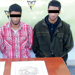 المتهمان إلى جانب المخدرات المضبوطة. من المصدر