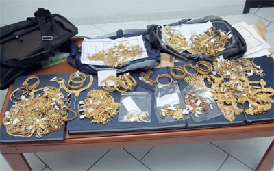 جانب من المشغولات الذهبية والمجوهرات المسروقة. من المصدر