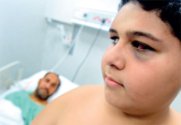 الأب والابن خلال علاجهما جراء الاعتداء. تصوير: باتريك كاستيلو