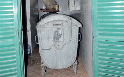 حاوية النفايات التي وُجد فيها الطفل. من المصدر