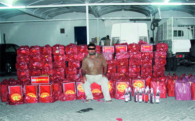 وبمواجهة المشتبه فيه ويدعى (م. أ. ف 40 سنة) باكستاني، اعترف بحيازته الخمور المضبوطة بقصد الاتجار لحساب أحد الأشخاص، وبالتدقيق على المتهم تبين أنه سبق ضبطه مرات عدة بتهمة الاتجار في المشروبات الكحولية ومحاكمته وإبعاده من الدولة إلا أنه عاد متسللاً، لممارسة بيع المشروبات الكحولية، وبناءً على اعترافات المتهم تم توقيفه وإحالته الى النيابة العامة لمباشرة التحقيقات.