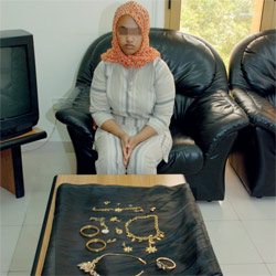 الخادمة وأمامها المصوغات المسروقة. من المصدر