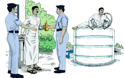 ضبطت شرطة المنطقة الغربية، صبّاب قهوة متجوّلاً بأجر يومي (مخالف قانون الإقامة)، تخصص في سرقة محتويات الفلل، ومقتنيات السكان، ولحظة القبض عليه حاول الاختباء داخل خزان مياه، كما ألقت الشرطة القبض على عصابة مكونة من سبعة أشخاص، بينهم ستة متسللين، بتهمة سرقة كابلات كهربائية هوائية بطول 8000 متر في المنطقة الغربية.