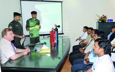 وتم تدريب الحضور على كيفية استخدام طفاية الحريق في مكافحة الحرائق البسيطة.