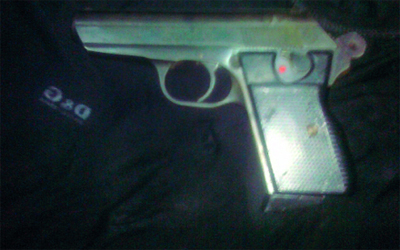 المسدس الذي استخدمه المتهمان في السطو على صاحب المحل. من المصدر