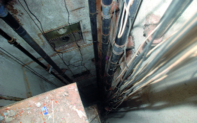 الأنابيب التي حاولت العاملة تسلقها. من المصدر