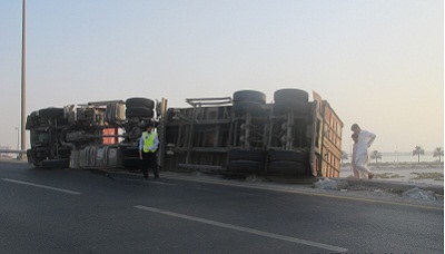 انقلبت شاحنة في الشارقة، بعد عصر اليوم، وتعرض سائقها لإصابات بسيطة نقل على إثرها للمستشفى لتلقي العلاج، وكانت الشاحنة قادمة من شارع التعاون باتجاه شارع النهدة، وما إن اقتربت من جسر النهدة حتى انقلبت نتيجة السرعة الزائدة وعدم السيطرة بسبب وجود سيارة صغيرة كانت بالقرب منها، كما ان بعض إطاراتها كانت متآكلة تماماً، ما يعني انها غير مناسبة لسير على الطرقات.