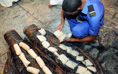 وأفاد مصدر في جمارك دبي بأنه أثناء التفتيش الاعتيادي على الحاوية التي تضمنت 77 رول أقمشة، لوحظ وجود اختلاف في كثافة بعض الرولات وأحجامها، الأمر الذي أثار شكوك مفتشي الجمارك، ففتحوا أحد الطرود الذي يحتوي على الأقمشة وفحصوه يدوياً، بالاستعانة بوحدة الكلاب الجمركية، وتبين وجود كميات كبيرة من الحبوب داخل التجويف الذي يفصل الرولات عن الخيوط الملفوفة حولها، وتحديداً في 14 رولا منها، أما بقية الرولات وعددها 63 فكانت سليمة.