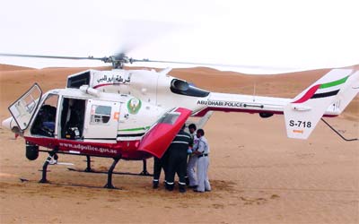 وكان جناح الجو تلقى بلاغين، كل على حدة من العمليات المركزية، يفيدان بوجود حادثي تدهور سيارتين منفصلين في منطقة أم الرمول، أسفرا عن إصابة شخصين، وفور تلقي البلاغ أقلعت طائرة الإسعاف الجوي فرع العين، وعلى متنها كادر طبي إلى مكان الحادثين، قدم الإسعافات الأولية للمصابَيْن لضمان استقرار حالتهما الصحية، ونقلهما إلى المستشفى.
