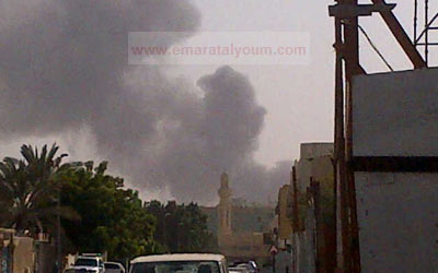 سحب الدخان تصاعدت فوق المناطق المحيطة بالمستودعين. الصورة بعدسة أحد قراء "الإمارات اليوم"