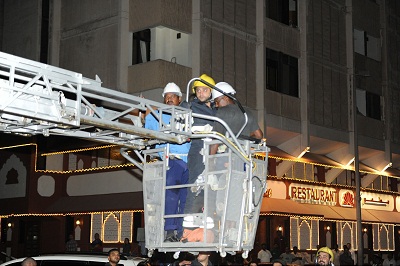 وأضاف أن فرق الإنقاذ باشرت على الفور التواصل مع العاملين، وتطمينهما من خلال الاحتياطات التي اتخذت على وجة السرعة، بتثبيت الرافعة ومنعها من التأرجح، وشرح خطوات تثبيتهما بحبال الإنقاذ، التي تحول دون سقوطهما، إلى أن تمكنت فرق الإنقاذ من انزالهما بسلامة بوساطة السلم المتحرك.