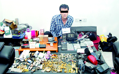 المتهم وأمامه بعض المسروقات. من المصدر
