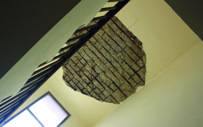 وأضاف أن فرقة مختصة من مركز الادارة انتقلت الى موقع الحادث لمعرفة أسبابه وما نتج عنه من آثار، وتبين لها وجود انهيار في سقف غرفة الدرج، وتهالك سقف المنزل، ولم تنتج أي أضرار جسمانية أو إصابات بين السكان.