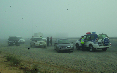 وأفاد بأن هذه الفترة من العام تشهد سقوط الضباب بكثافة على الطرق المختلفة، مشدداً على ضرورة التزام الحذر من جانب السائقين والالتزام بالتعليمات الضرورية للقيادة في هذه الظروف. وناشد مستخدمي الطريق توخي الحذر في أوقات الضباب والالتزام بقواعد الأمن والسلامة.