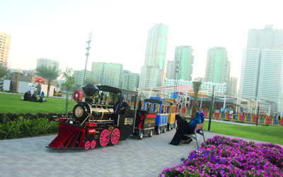 الأم تركت طفلتها في منطقة الألعاب في حديقة المجاز. تصوير: أسامة أبوغانم