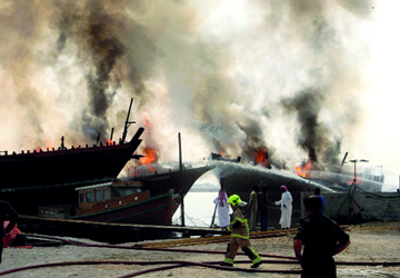 وأضاف أن بلاغاً ورد في التاسعة و25 دقيقة صباحاً عن اشتعال النيران في قوارب بمنطقة الجداف، فتوجه 42 ضابطاً وفرداً من ثلاثة مراكز، إضافة إلى مركز الإطفاء البحري، إلى موقع الحريق، وعملوا على احتواء النيران ومنع امتدادها إلى قوارب أخرى.
