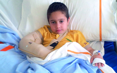 أصيب الطفل محمد عاشور (خمس سنوات)، بكسر وخلع في مرفق يده اليمنى، إثر سقوطه من لعبة بالونية، بحديقة الجرف في عجمان، بداية الشهر الجاري، ما تسبب في إدخاله غرفة العمليات بمستشفى راشد في دبي، وإجراء عملية جراحية عاجلة له في يده اليمنى، وتركيب ثلاث قطع بلاتينيوم وبراغي تجبير الكسر وإعادة المرفق إلى مكانه مرة أخرى.