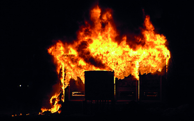 انقطعت الكهرباء، مساء أول من أمس، عن 34 منزلاً في منطقة الجولان في إمارة رأس الخيمة، إثر اشعال شخص معاق ذهنياً النيران في «أريكة» داخل منزله بالقرب من المحول الكهربائي في المنطقة، ما تسبب في اندلاع النيران في المحول الكهربائي واحتراقه بالكامل.